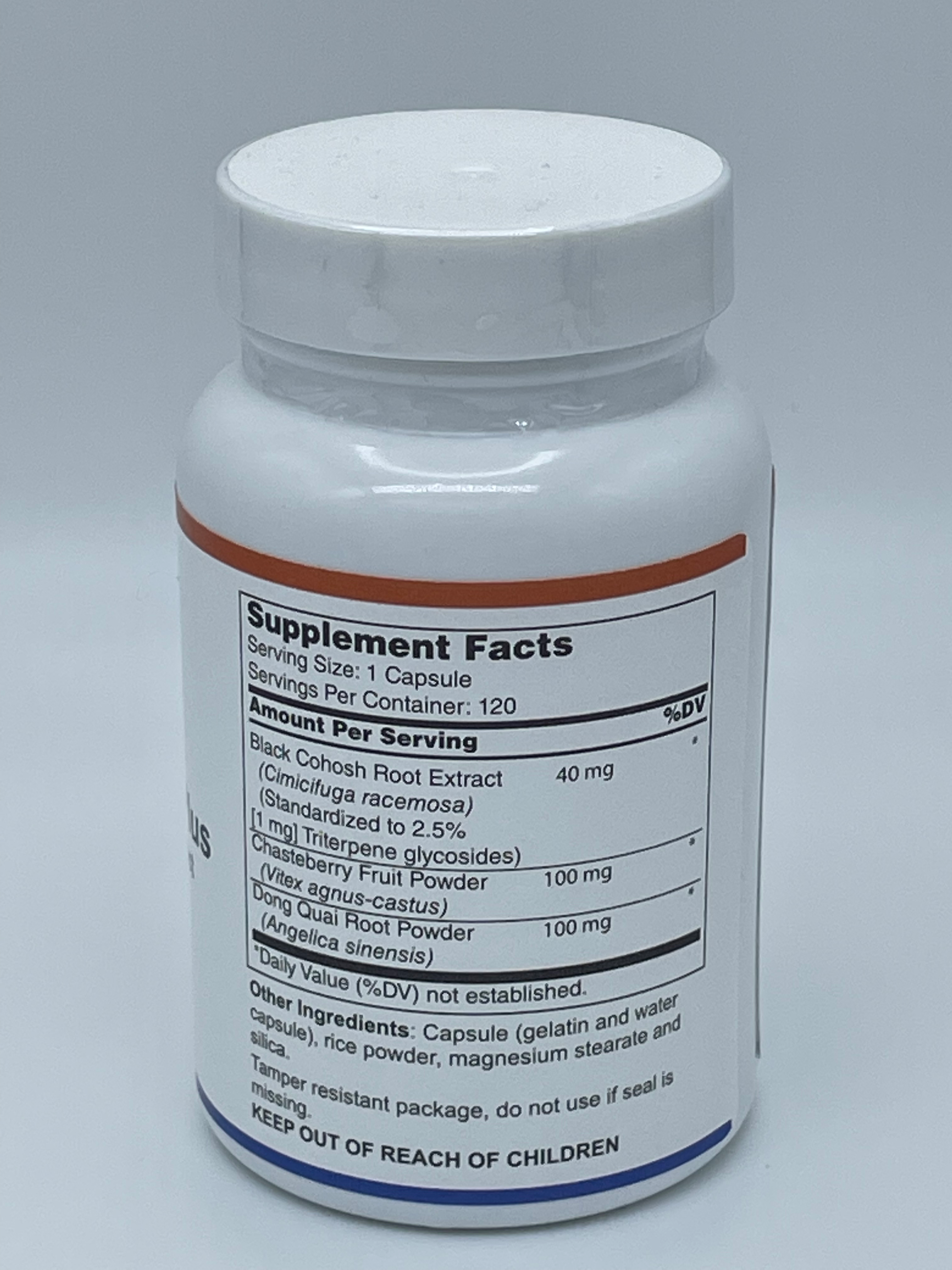 Black cohosh is well known for promoting comfort during menopause. Black cohosh functions by maintaining healthy levels of luteinizing hormone (LH), allowing for optimal comfort and physical well-being. The herb also exhibits mild estrogenic activity by binding to estrogen receptors. Black Cohosh Plus provides 40mg of standardized extract of the root and rhizome of the black cohosh plant. Each capsule is standardized to 2.5% triterpene glycosides and includes Chasteberry Fruit Powder and Dong Quai Root Powder.