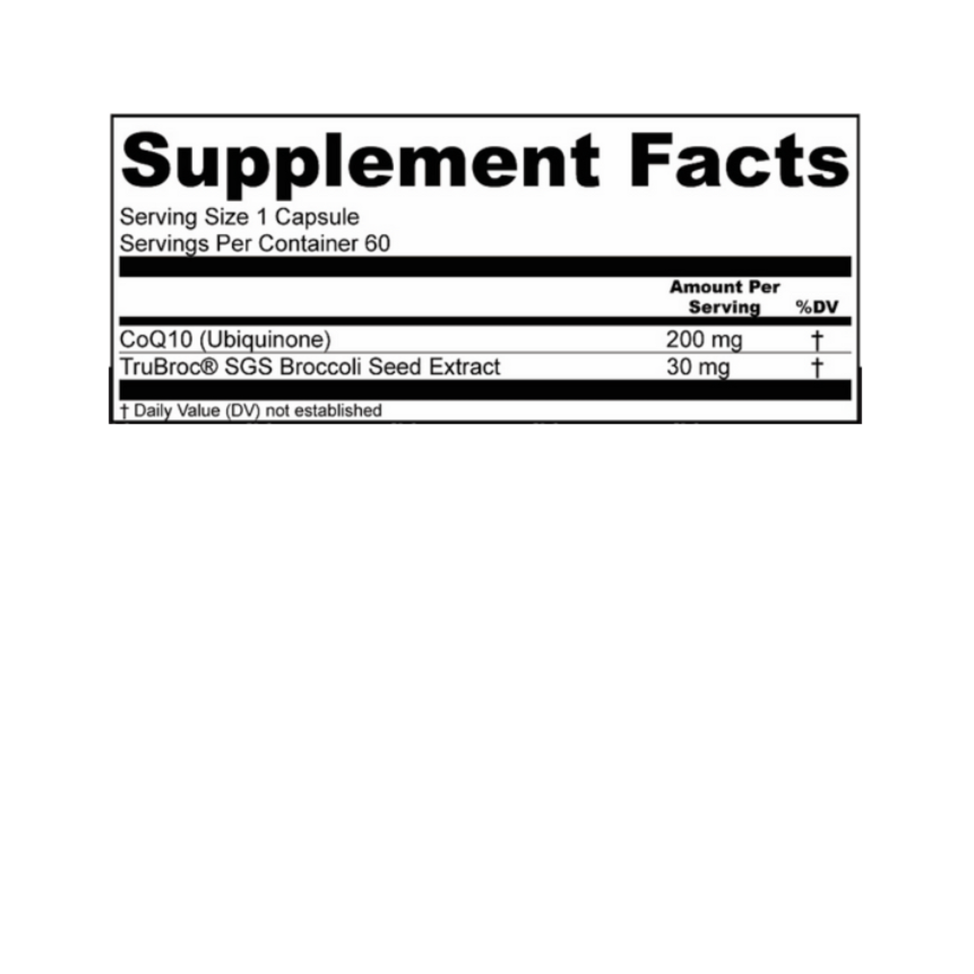 This formulation blends two potent ingredients known for their beneficial effects on health. CoQ10, a vital coenzyme involved in energy production within cells, is paired with TrueBroc®, an innovative broccoli seed extract rich in glucoraphanin, which supports the body's natural detoxification processes and promotes antioxidant activity