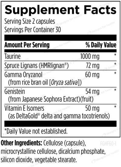 FemGuard-HF™ is designed to help diminish mild hot flashes caused by menopause and promote overall menopausal comfort.* Hot flashes are a common vasomotor complaint during menopause that can significantly affect a woman’s quality of life. This product is a synergistic combination of phytoestrogens (genistein and lignans [as HMRlignan®]), gamma-oryzanol, DeltaGold® tocotrienols, and the amino acid taurine.* This product may help promote healthy aging.* It may support healthy inflammatory and antioxidative responses to estrogen fluctuations/insufficiency, bone health, and healthy hormonal and neurotransmitter balance.*