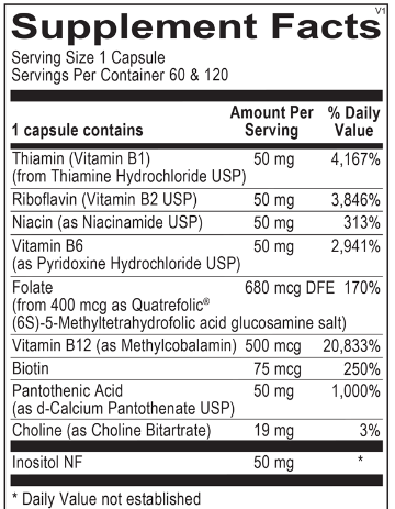 Methyl B Complex is a balanced and comprehensive supplement that includes eight essential B vitamins, along with choline, inositol and folate as Quatrefolic® 100% 5-MTHF. The high-quality ingredients included in Methyl B Complex help build a healthy micronutrient reserve to support energy production in the body.