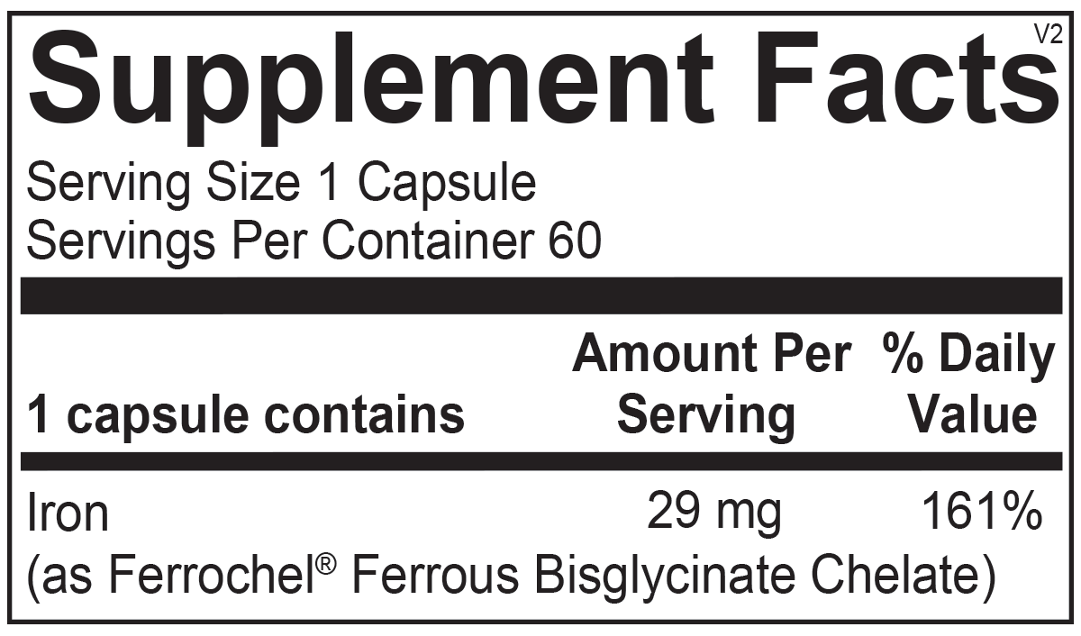 Gentle Iron provides 29 mg of elemental iron per serving, ideally formulated using the amino acid chelate form of iron (ferrous bisglycinate) for enhanced absorption, optimal utilization and gastrointestinal (GI) comfort. Some individuals, who take other forms of iron supplements, may experience GI side effects, including gas, bloating, constipation or a combination of these symptoms. Supplementing the right form of iron can be key to maintaining healthy levels within the body and compliance to a supplement regimen.