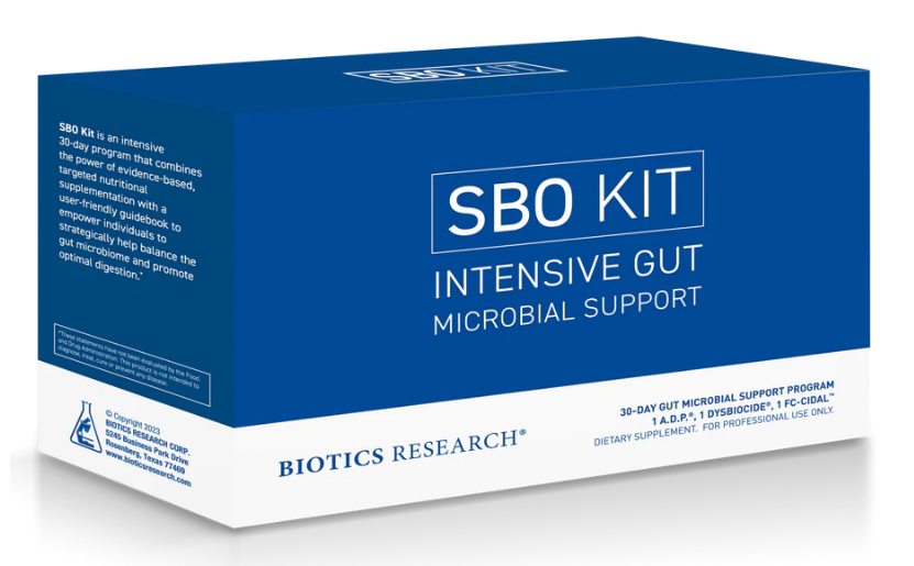 SBO KIT is an intensive 30-day program that combines the power of evidence-based, targeted nutritional supplementation with a user-friendly guidebook to empower individuals to strategically help balance the gut microbiome and promote optimal digestion.