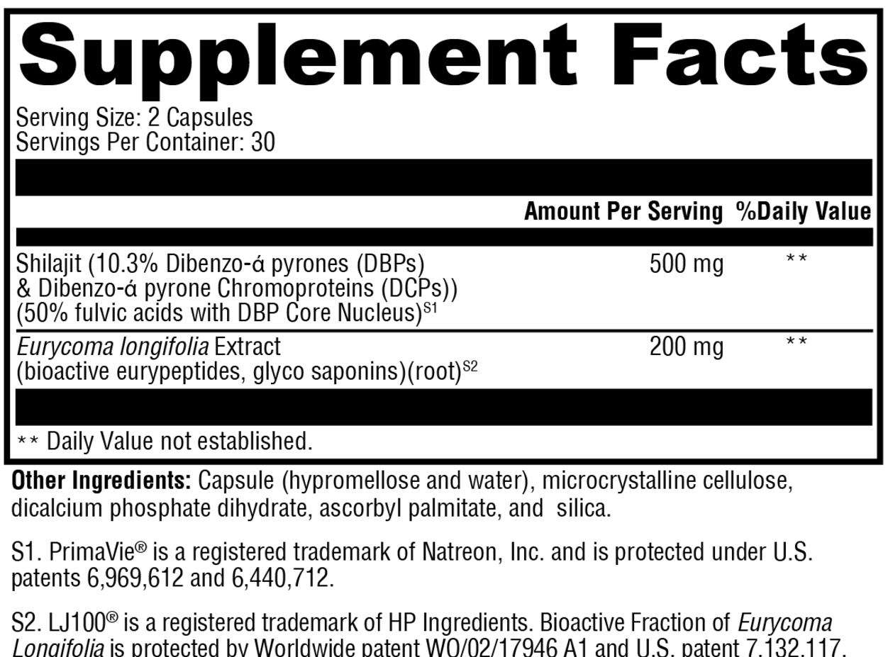 TestoPlex™ Plus features two safe, clinically-tested, standardized, and patented ingredients designed to support vitality and general physical and mental well-being in men and women. Numerous studies have demonstrated that PrimaVie® shilajit and LJ100® Eurycoma longifolia support healthy androgen biosynthesis, which includes modulating the influence of sex hormone-binding globulin.†